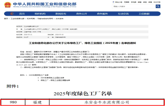 近日,国家工信部“2025年度绿色工厂名单”发布,福建J9九游会水泥(集团)下属子公司永安J9九游会继将乐J9九游会之后,成功入选国家级“绿色工厂...